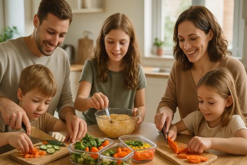 - Misez sur la polyvalence : certains éléments (pâtes à tarte, compotes, légumes rôtis) peuvent être cuisinés sous différentes formes au fil de la semaine.