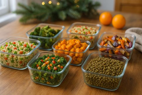 Listes et planification : rédigez une checklist en amont (à télécharger plus bas !) précisant pour chaque plat la possibilité de le préparer à l’avance. Le batch cooking est votre allié : les légumes peuvent être découpés, rôtis ou blanchis la veille, les sauces et dips reposent au frais, les gratins ou lasagnes se réchauffent facilement le jour J.