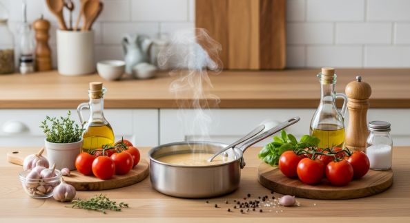 - Prévoir une base neutre de soupe ou de sauce : elle pourra se transformer au dernier moment selon le besoin (velouté d’urgence, liant pour plat mijoté, sauce pour gratin improvisé).