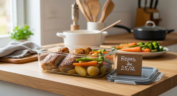 - Anticiper le stockage des restes : Préparez contenants hermétiques, bee wraps ou boîtes à compartiments pour faciliter le rangement post-repas.