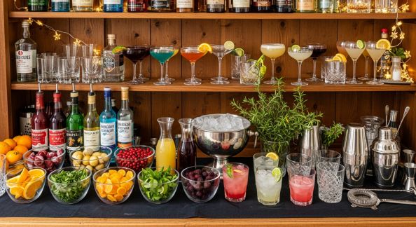 - Guirlandes lumineuses : Parsemez autour du coin boissons pour une ambiance tamisée.